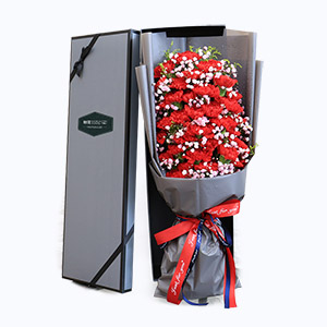 熱情如火-33枝紅玫瑰+夢幻黑紗鮮花花束